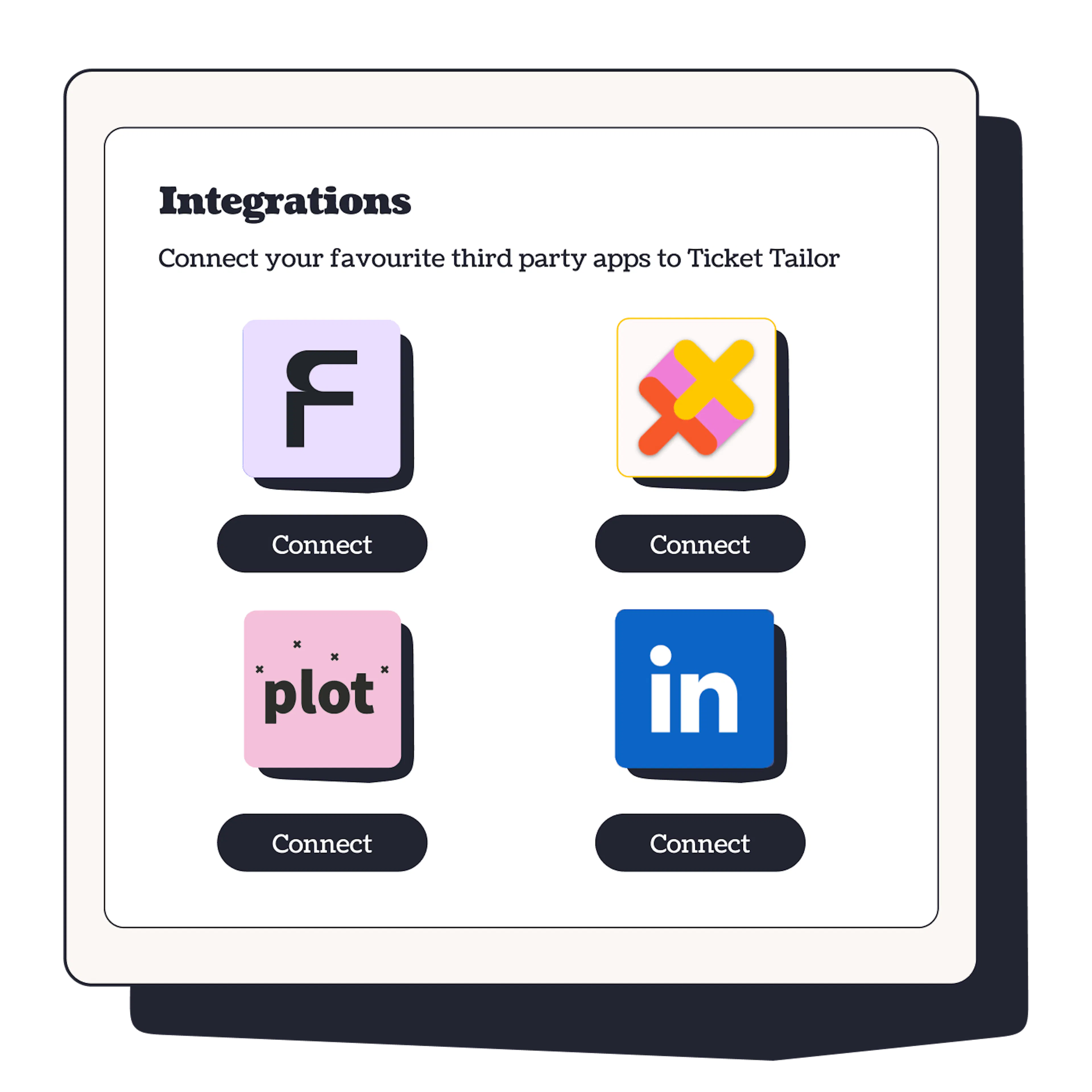 Whether through our powerful Zapier connection, our AI powered MCP connector or one of our many direct integrations – Ticket Tailor offers industry leading connectivity for events looking to join the dots between their different software solutions.