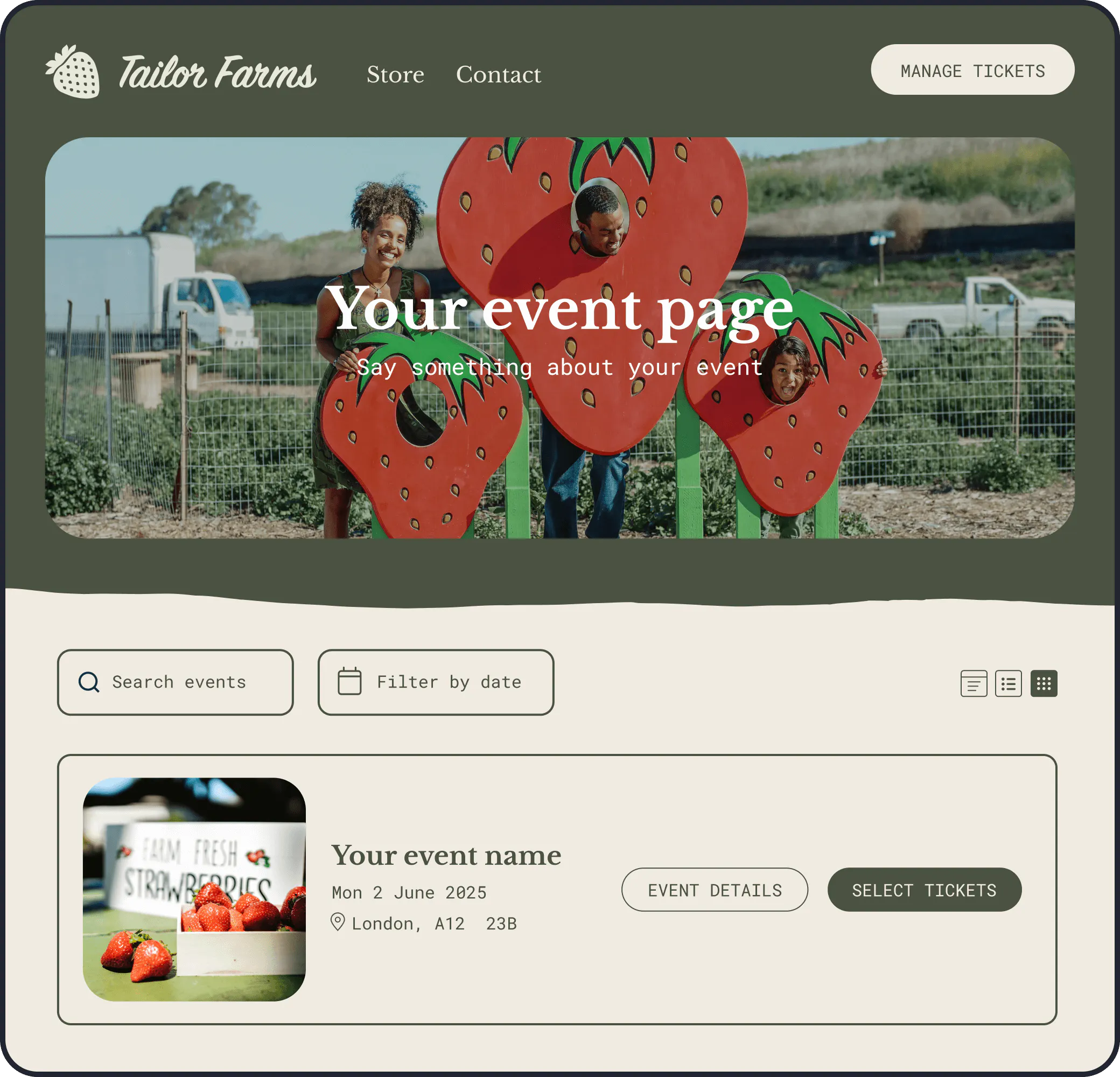With Ticket Tailor, you don’t need to settle for generic. Our new box office design tool gives you the freedom to create something that truly reflects your event’s identity. And all with zero coding knowledge required 😎.