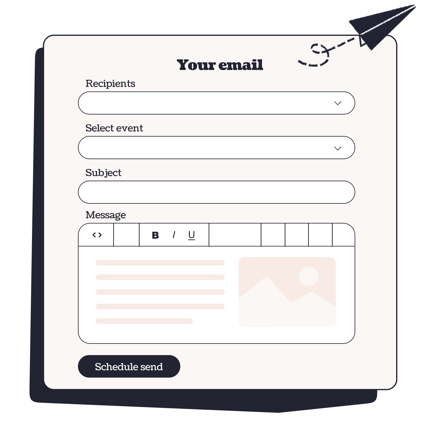 Email is one of the best ways to keep your ticket buyers in the loop. That's why we've made both order confirmations and event confirmations customizable. Plus, with our email broadcast tool, you can send and schedule important announcements for free.