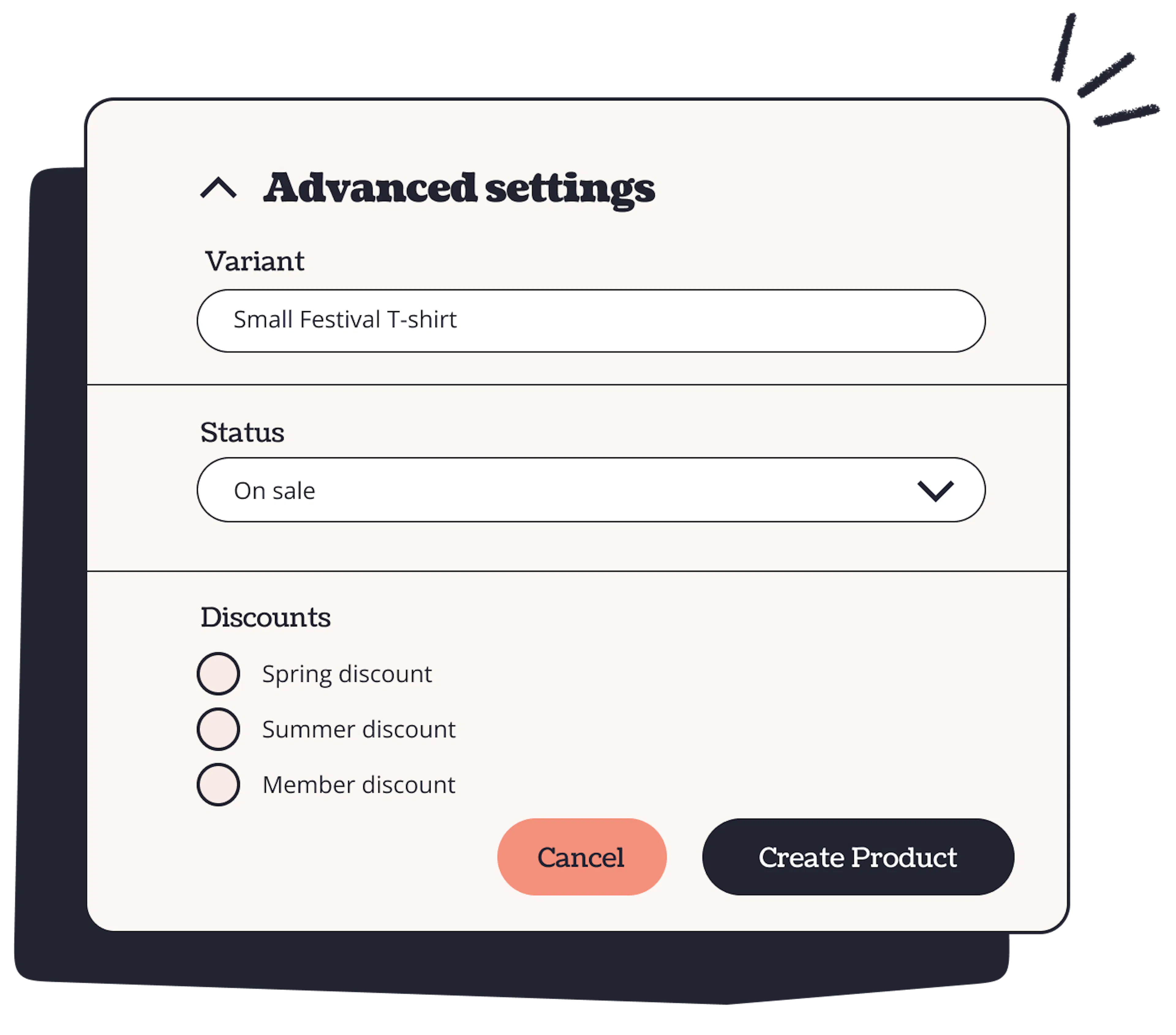 Different sizes, flavours or upgrades? No problem. Create product variants so your attendees can choose exactly what they want, while keeping everything organised behind the scenes.