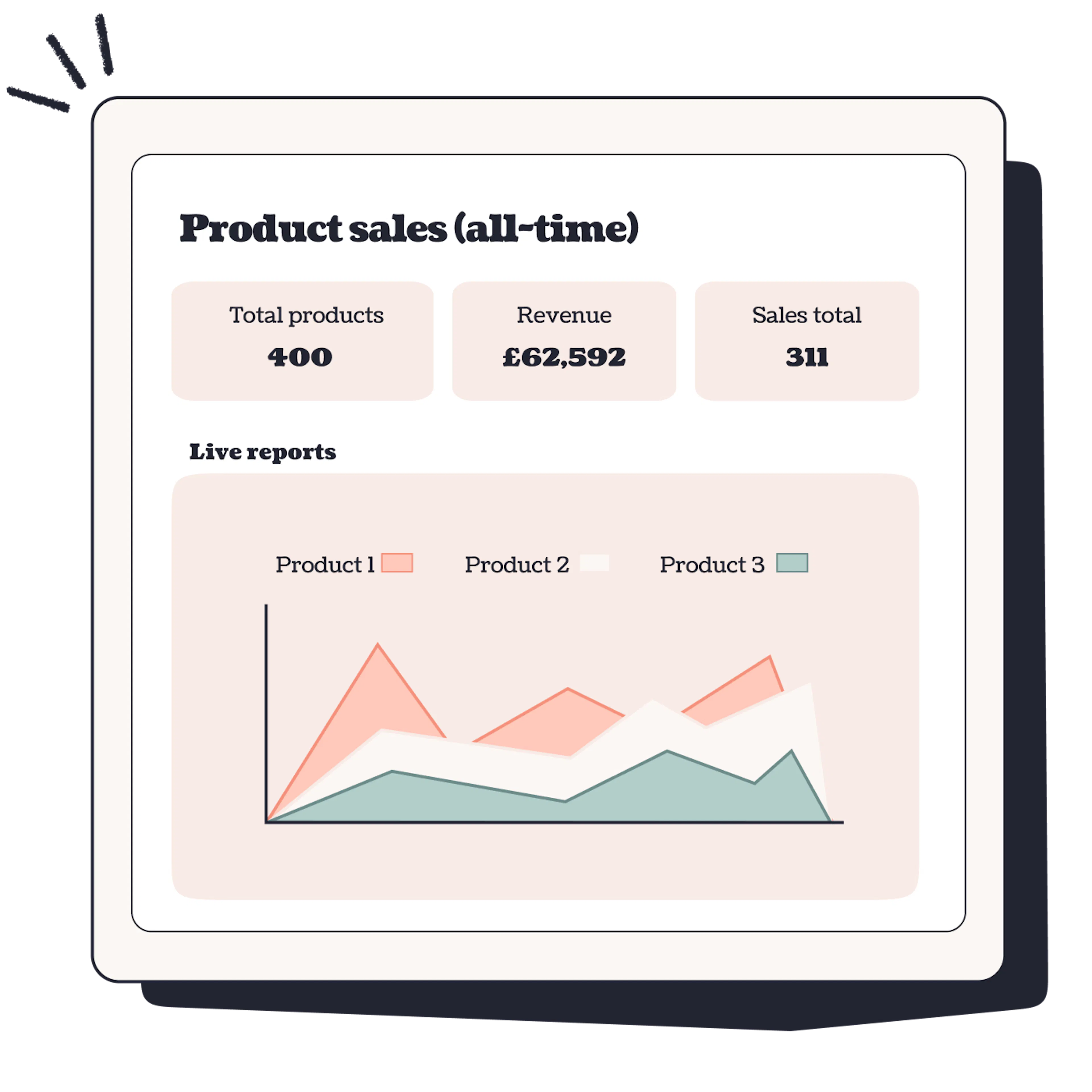 Keep fulfilment simple, whether you’re handing out merch at the door or preparing pre-orders in advance. Track every product sold and export reports whenever you need them.