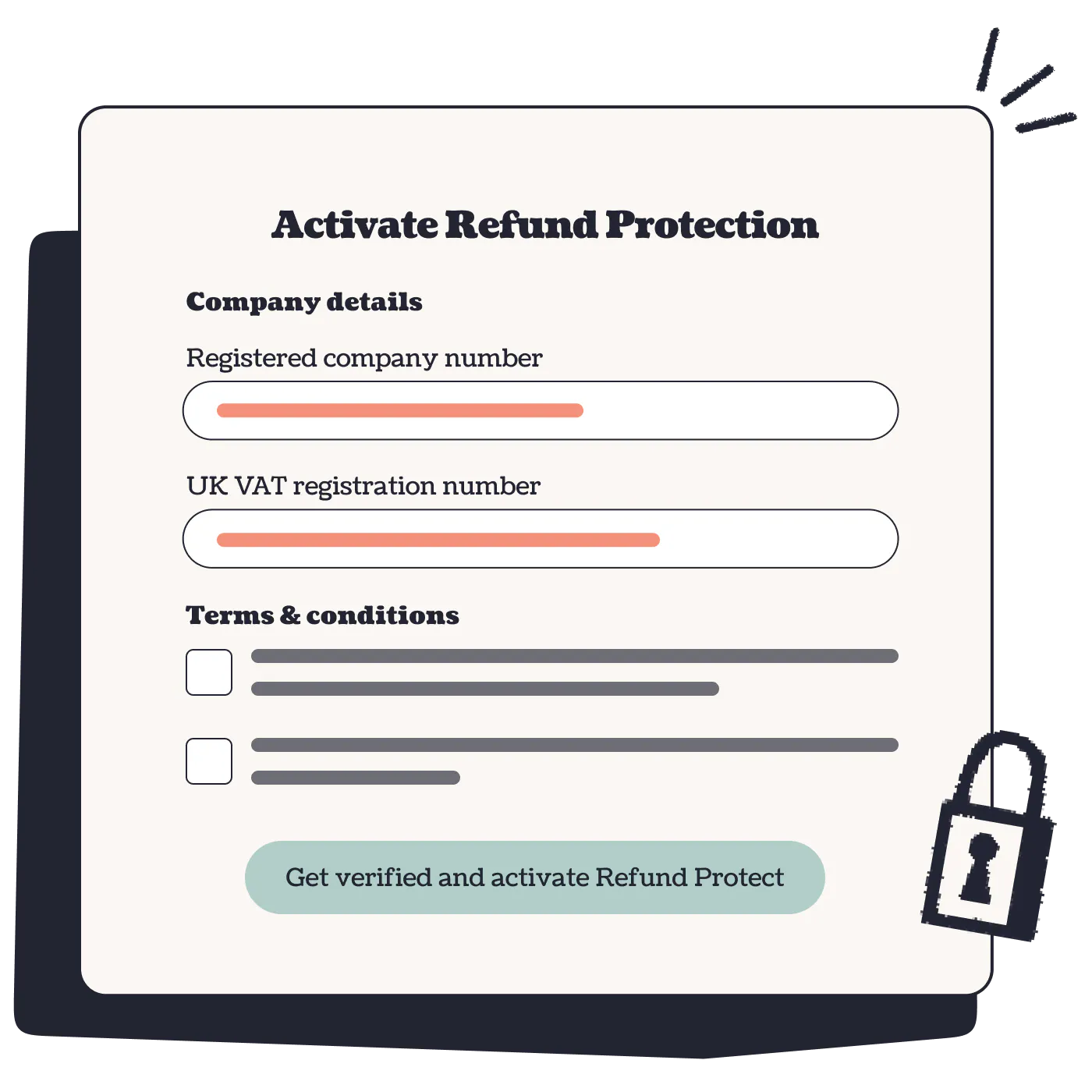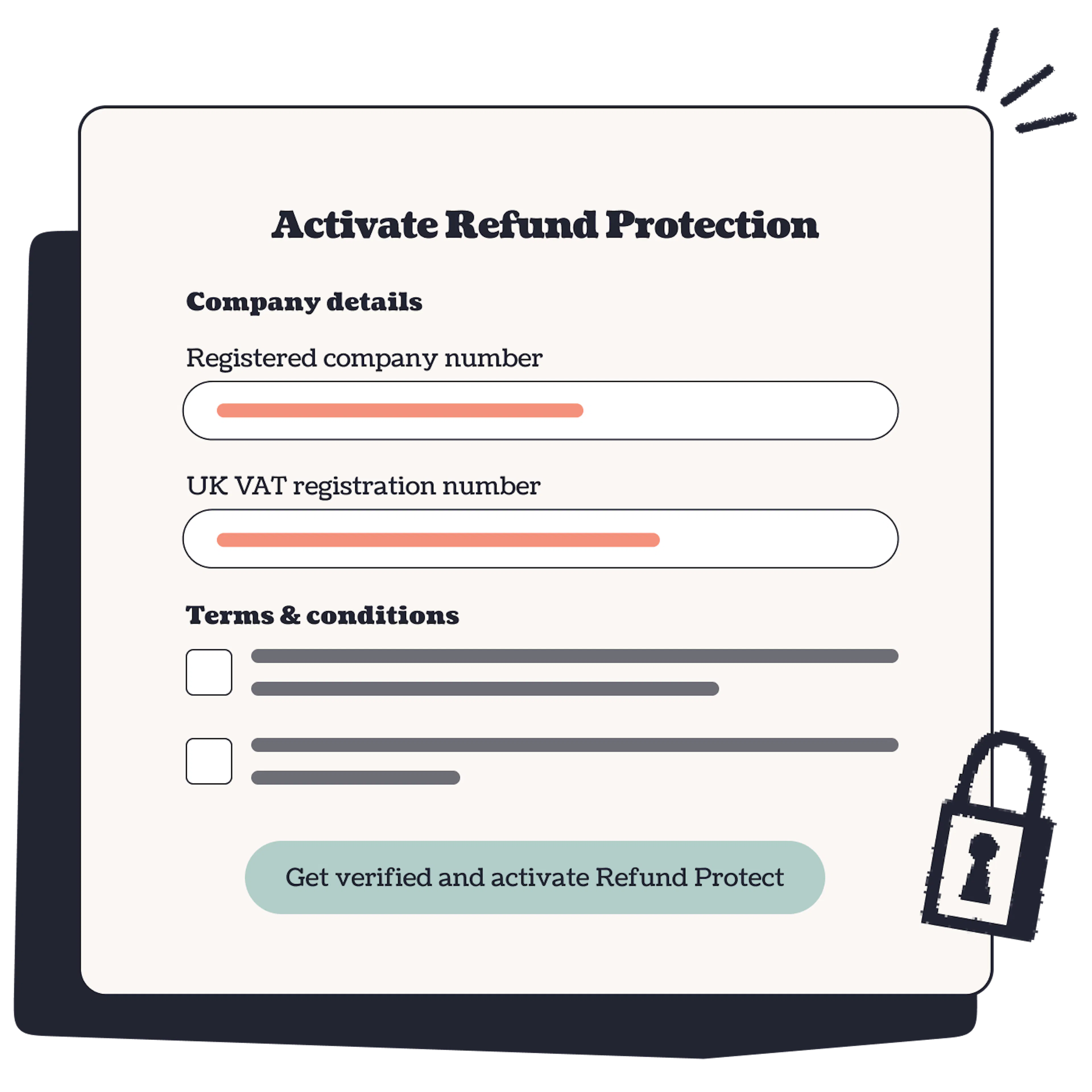 We’ll need a few basic details about your organisation to verify your account. You’ll also need to accept some additional terms to offer this product to your customers.